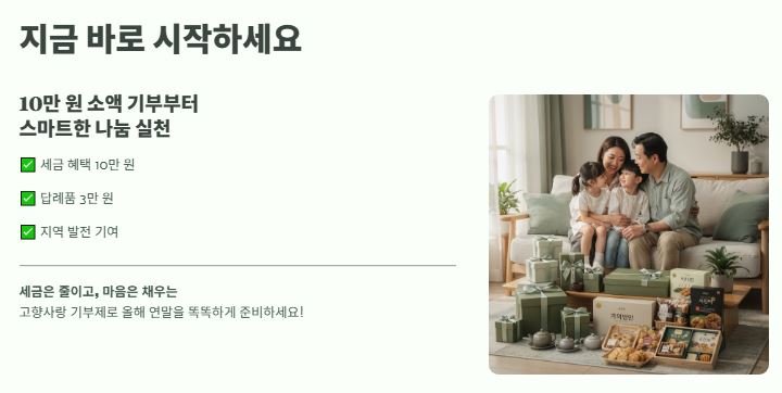 혜택 내용을 표로 정리해 드릴게요. 이걸 보시면 왜 다들 10만 원 기부를 강력하게 추천하는지 바로 이해가 되실 거예요.