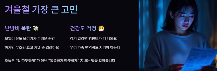 안녕하세요! 찬바람이 불기 시작하면 가장 먼저 걱정되는 게 바로 '난방비 폭탄'이죠. 저도 예전에는 보일러 온도 올리기가 무서워 벌벌 떨었던 기억이 나요. 하지만 단순히 보일러를 끄고 춥게 지내는 것이 정답은 아니더라고요. 솔직히 말해서, 무조건 아끼려다 감기라도 걸리면 병원비가 더 나오기도 하잖아요?