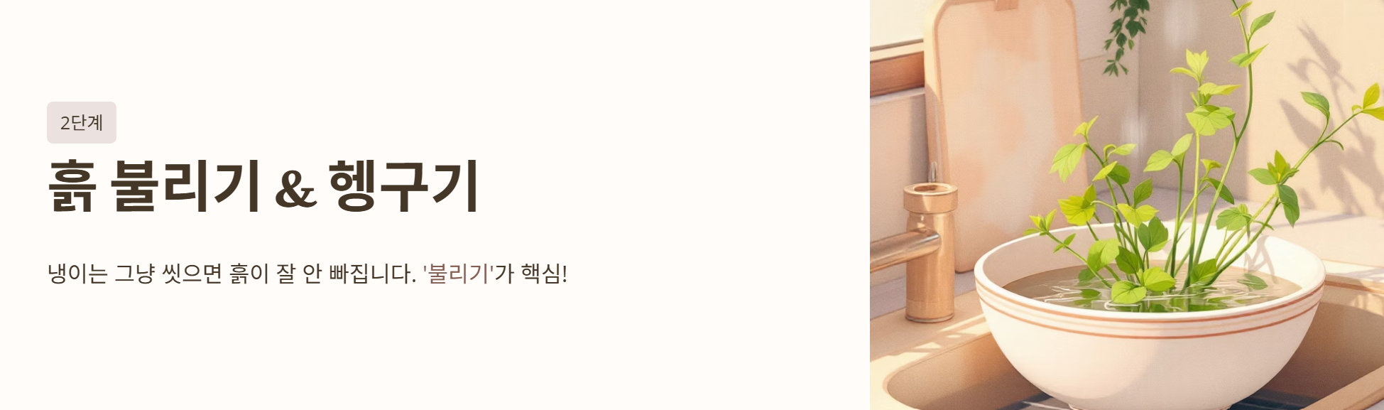 | 물에 담그기 | 찬물에 10~20분 정도 푹 담가 흙을 불려줍니다. |