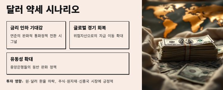 - 영향 : 원·달러 환율이 하락할 가능성이 높으며, 주식, 원자재, 신흥국 시장에는 전반적으로 긍정적인 신호로 해석됩니다.