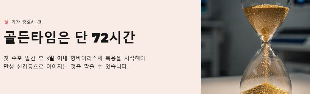 - 피부 발진과 수포가 보인다면? → 피부과 (가장 빠른 항바이러스제 처방)