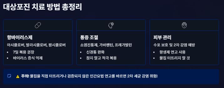 발진이 나타난 후 72시간 이내에 항바이러스제 복용을 시작하는 것이 치료 효과를 극대화하는 핵심입니다.