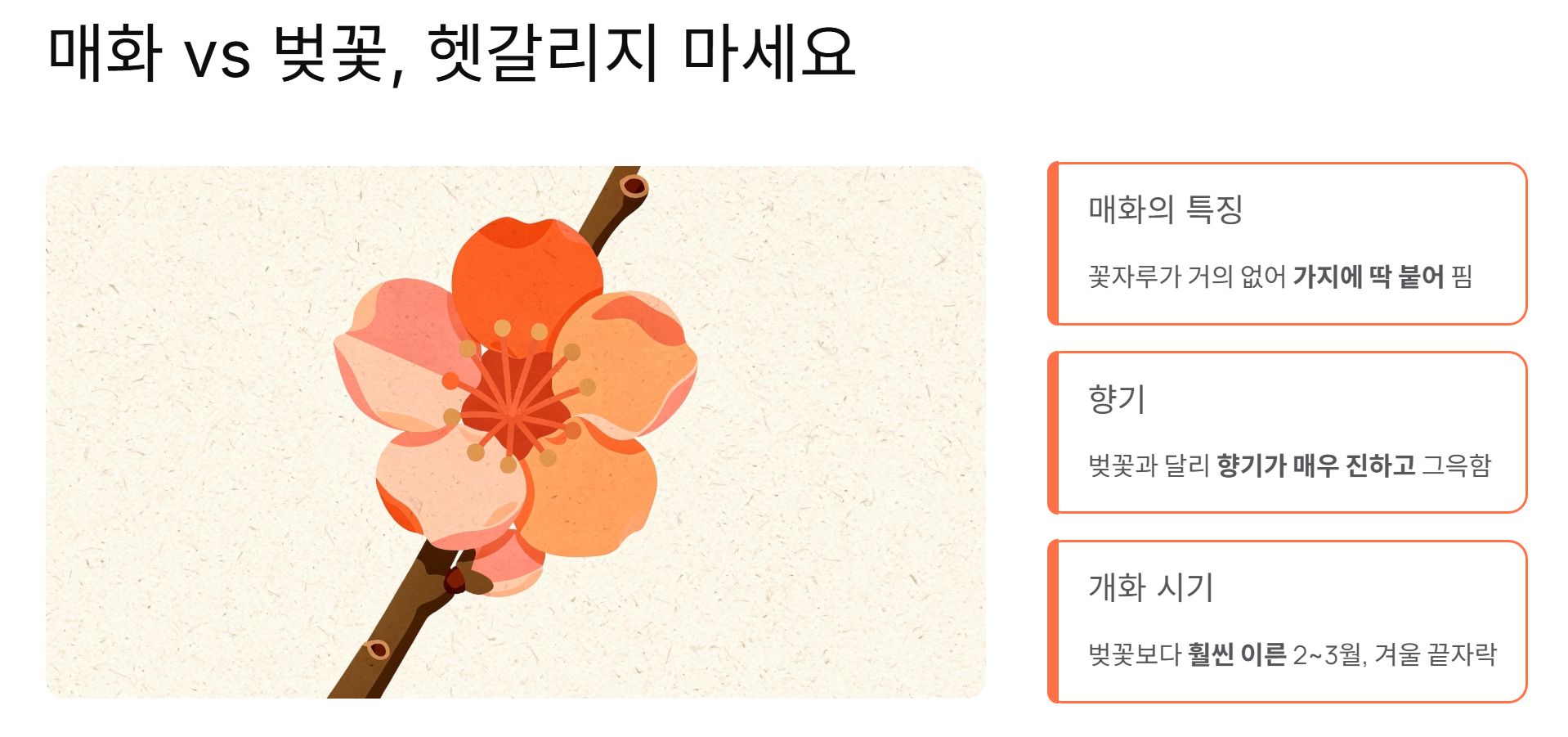여러분도 인생의 추운 겨울을 지나고 있다면, 매화의 고결한 기운을 받아 멋지게 꽃 피우시길 응원합니다.