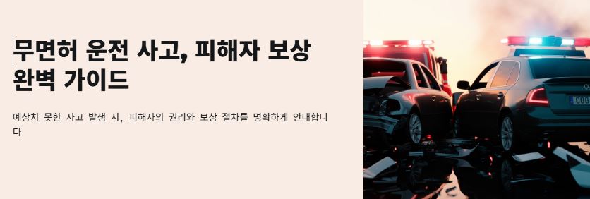 - 피해자는 보상받습니다: 무면허 사고라도 가해자 보험, 나의 무보험차 상해, 국가 보장사업을 통해 피해 보상은 우선적으로 진행됩니다.