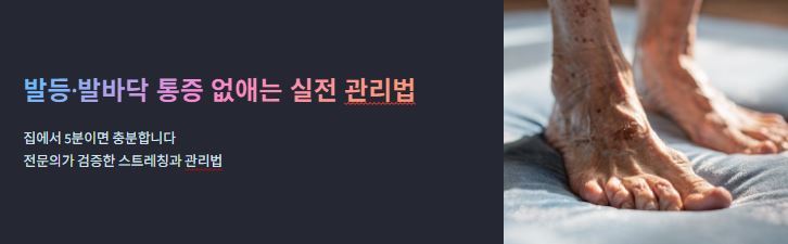 오늘은 병원 진료 지침과 운동 처방을 바탕으로 검증된 '발 통증 완화 실전 가이드'를 준비했습니다. 집에서 5분만 투자하면 발이 가벼워지는 스트레칭법과, 내 발 상태를 객관적으로 점검해 볼 수 있는 체크리스트를 지금 바로 확인해 보세요!