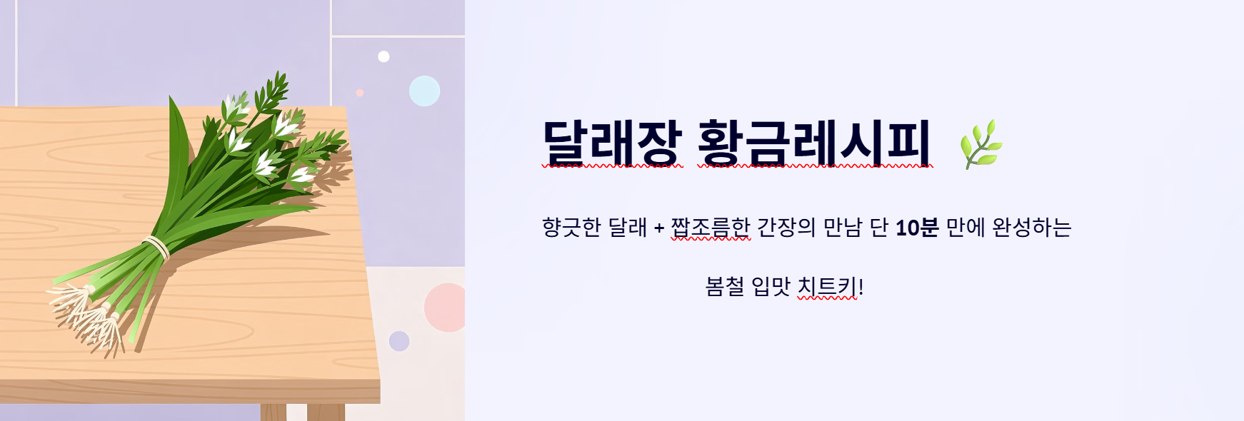 여러분, 벌써 시장이나 마트에 파릇파릇한 봄나물들이 얼굴을 내밀기 시작했어요! 특히 이맘때 먹는 달래는 특유의 알싸한 맛과 향긋함 덕분에 잃어버린 입맛을 되찾아주는 일등 공신이죠. 저도 어제 마트에서 달래 한 묶음을 사 왔는데, 주방 가득 퍼지는 봄 향기에 기분이 참 좋아지더라고요. 오늘은 따끈한 밥 한 그릇 뚝딱 비우게 만드는 '마법의 양념장', 달래장 만드는 법을 아주 자세히 소개해 드릴게요!