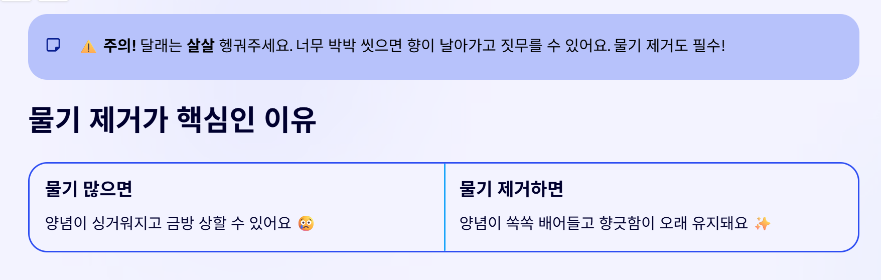 조금 더 진한 감칠맛을 원하신다면 멸치액젓 0.5큰술이나 매실액을 살짝 추가해 보세요. 맛이 훨씬 풍성해집니다!