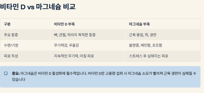 | 구분 | 비타민 D 부족 | 마그네슘 부족 |