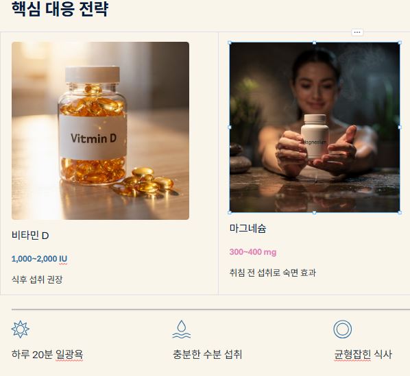 지금까지 비타민 D와 마그네슘 부족 증상에 대해 알아보았습니다. 단순한 피로라고 생각했던 신호들이 알고 보니 우리 몸의 영양 결핍을 알리는 소중한 외침이었네요. 오늘 알려드린 정보가 여러분의 활기찬 일상을 되찾는 데 조금이라도 도움이 되었기를 바랍니다.