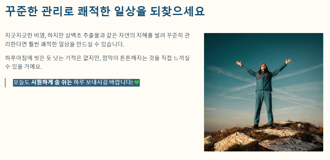 지긋지긋한 비염, 하지만 삼백초 추출물과 같은 자연의 지혜를 빌려 꾸준히 관리한다면 훨씬 쾌적한 일상을 만드실 수 있을 거예요. 솔직히 말해서 하루아침에 씻은 듯 낫는 기적은 없겠지만, 점막이 튼튼해지는 것을 직접 느끼실 수 있을 겁니다. 오늘도 시원하게 숨 쉬는 하루 보내시길 바랍니다!