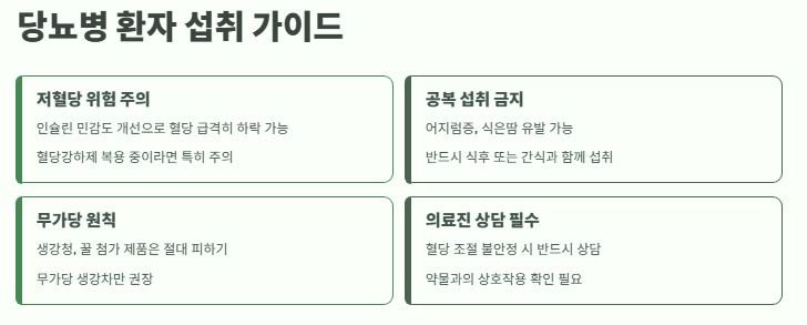💉 당뇨병 환자 (섭취 시 저혈당 위험 유의)