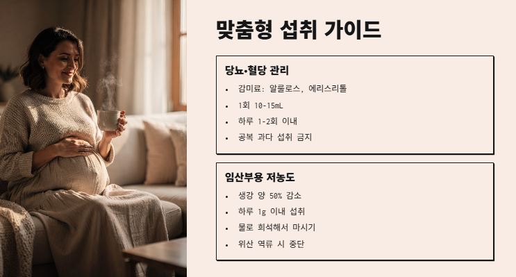 생강청은 건강식품이지만, 섭취 대상에 따라 주의해야 할 점이 분명히 있습니다. 특히 혈당 관리가 필요하거나 임신 중인 경우라면 레시피를 더 세심하게 조절해야 해요.
