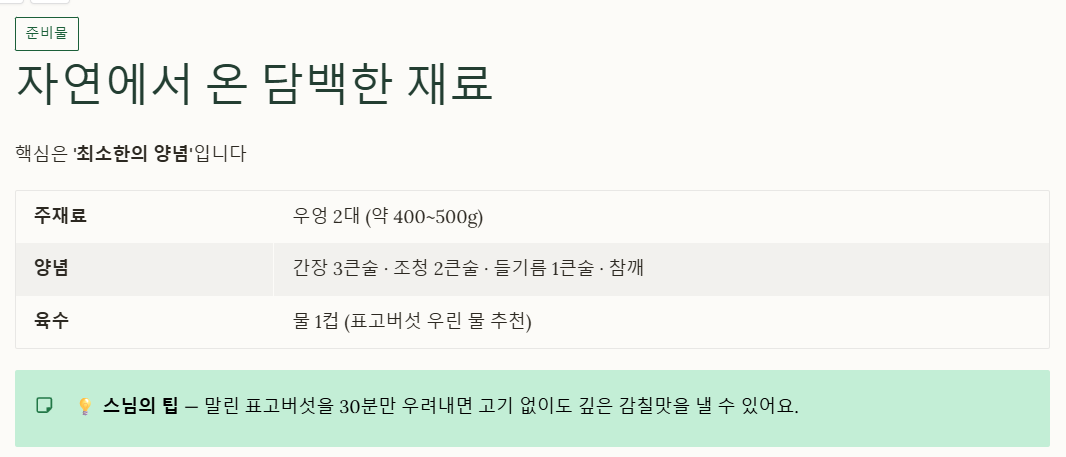 오늘 배운 내용을 간단히 정리해 드릴게요. 이것만 기억해도 사찰음식 전문가가 될 수 있어요!