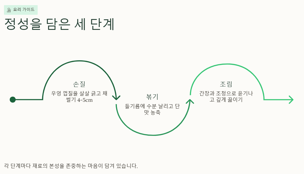 자극적인 양념에 길들여진 입맛을 잠시 쉬게 해주는 '선재스님 스타일 우엉조림', 오늘 저녁 반찬으로 어떠신가요? 재료의 생명력을 존중하는 마음으로 요리하다 보면, 어느새 마음까지 평온해지는 걸 느끼실 수 있을 거예요. 여러분의 건강한 밥상을 응원합니다!