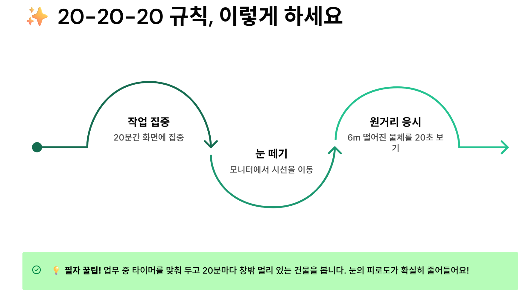 우리의 눈은 한번 나빠지면 되돌리기 정말 어렵다고 하죠. 오늘 알려드린 20-20-20 규칙만이라도 지금 바로 실천해 보시는 건 어떨까요? 여러분의 눈 건강을 진심으로 응원합니다!
