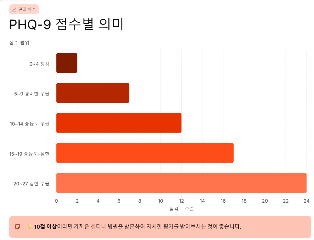 | PHQ-9 | 9문항 | 가장 널리 쓰이는 표준 선별 도구 |
