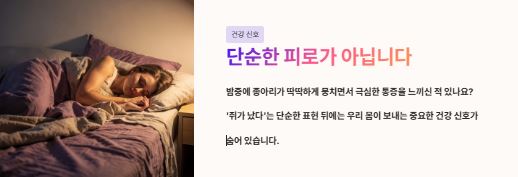 - 예방 생활화: 수분 섭취와 자기 전 스트레칭은 필수입니다.