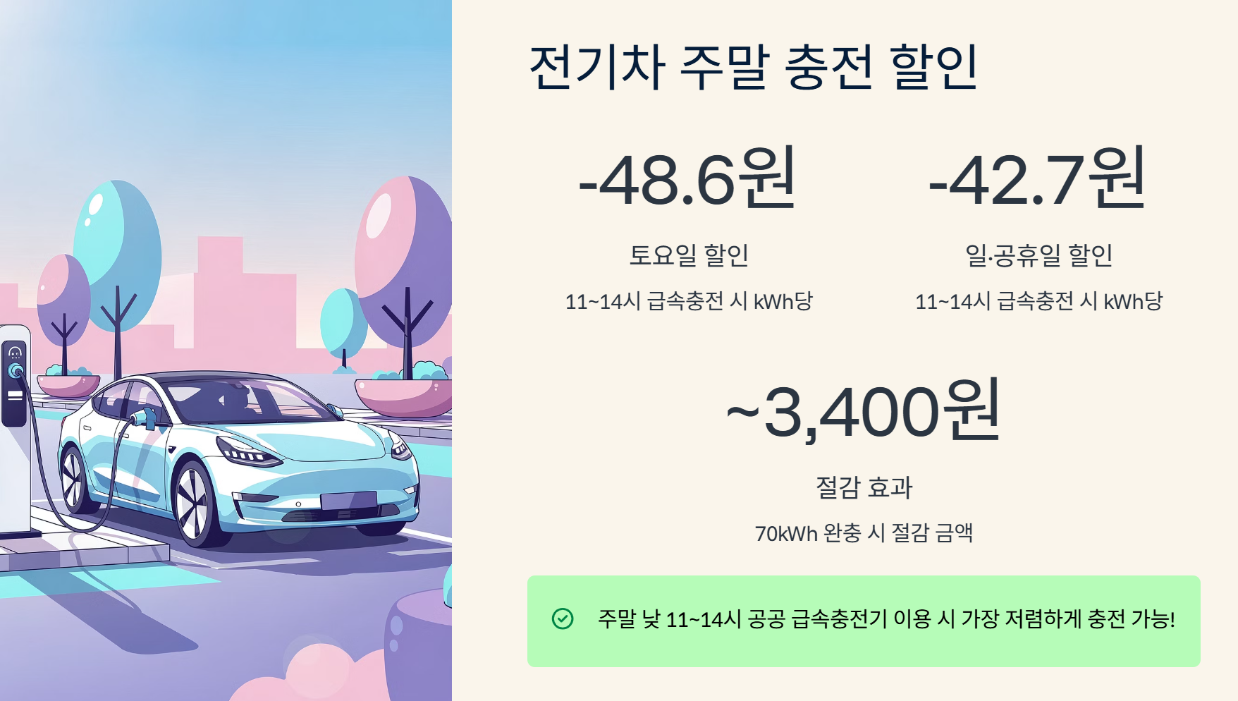 → 70kWh 완충 시 약 3,000~3,400원 절감 가능!