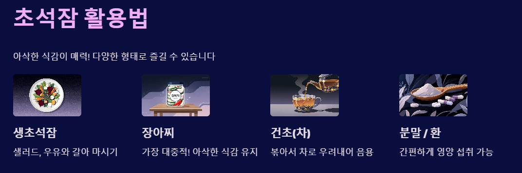 작지만 강한 영양을 품은 초석잠! 적절하게 섭취한다면 우리 가족의 똑똑한 건강 지킴이가 되어줄 거예요. 오늘 정보가 여러분의 건강한 식탁에 도움이 되었길 바랍니다.