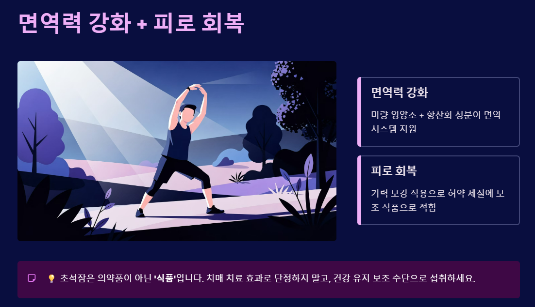 - 5. 면역력 강화: 미량 영양소와 항산화 성분이 결합되어 전반적인 면역 시스템을 지원합니다.