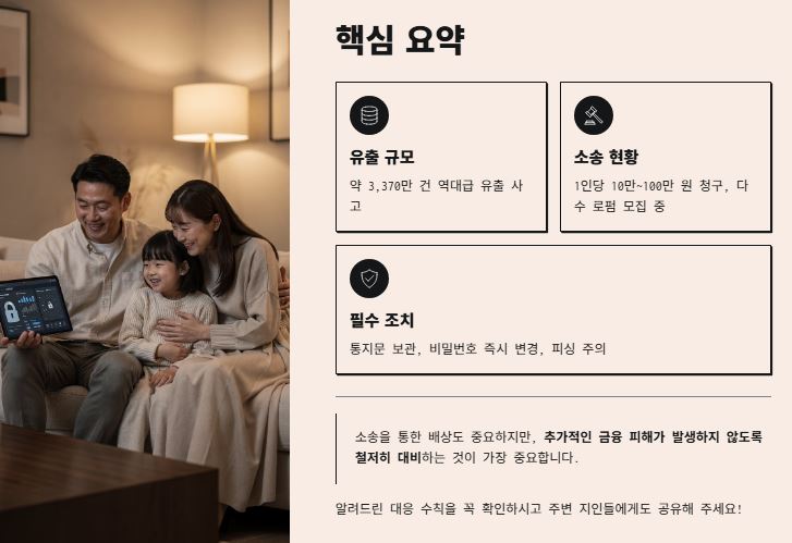 이번 쿠팡 사태는 우리 사회에 개인정보 보호의 중요성을 다시 한번 일깨워주었습니다. 소송을 통한 배상도 중요하지만, 무엇보다 중요한 것은 추가적인 금융 피해가 발생하지 않도록 철저히 대비하는 것입니다. 알려드린 대응 수칙을 꼭 확인하시고 주변 지인들에게도 공유해 주세요!