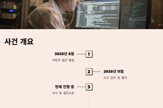 - 사고 원인: 전직 내부 개발자 계정을 통한 해외 서버 비인가 접근으로 추정됩니다.