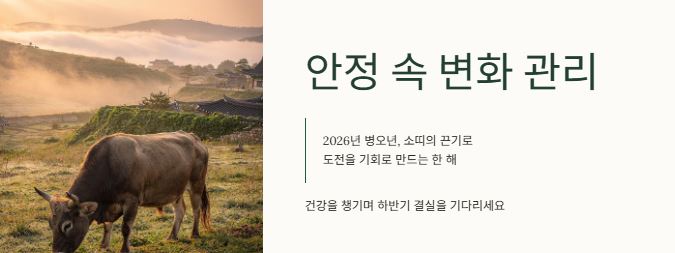 안녕하세요! 벌써 2026년 병오년(丙午年) 운세를 궁금해하시는 분들이 많으시네요. 평소 성실하고 묵묵하게 자리를 지키는 소띠 분들에게 다가올 한 해는 조금 특별한 에너지가 흐를 예정이에요. 뜨거운 불의 기운이 가득한 해인만큼, 평소의 '정중동' 자세에 약간의 변화가 필요할지도 모릅니다. 제가 정리한 내용을 통해 미리 대비하고 기회를 잡아보세요!
