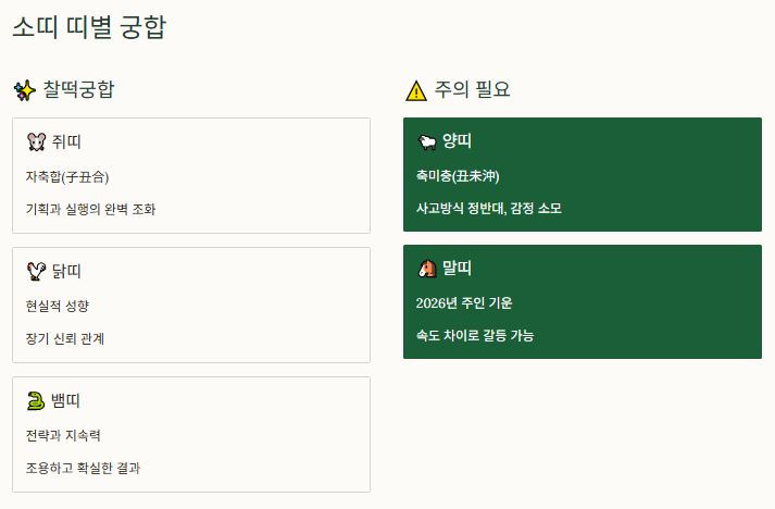 운의 흐름만큼 중요한 것이 바로 주변 사람들과의 관계죠. 명리학적 관점에서 2026년에 소띠와 잘 맞는 띠와 주의해야 할 띠를 정리했습니다.