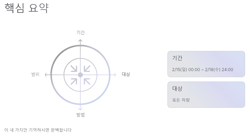 가장 중요한 건 역시 '정확히 언제부터 언제까지인가' 하는 점이겠죠? 이번 면제 혜택은 설 연휴를 포함해 총 4일간 진행됩니다.