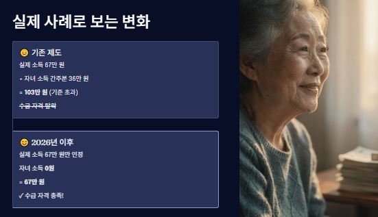2026년 이후: 실제 소득 67만 원만 인정 (수급 자격 충족 가능!)