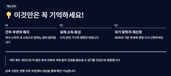 이번 제도 개선으로 더 많은 분이 의료비 걱정 없이 건강을 돌보실 수 있기를 진심으로 응원합니다.
