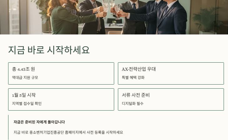 정책자금은 선착순은 아니지만, 예산이 소진되면 조기에 마감될 수 있습니다. 2026년 1월 초부터 시작되는 접수 일정을 미리 체크하세요.