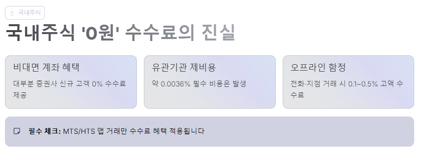 - 오프라인의 함정: 전화나 지점 방문 거래 시에는 0.1~0.5%까지 높은 수수료가 부과될 수 있으니 반드시 MTS/HTS를 활용하세요!