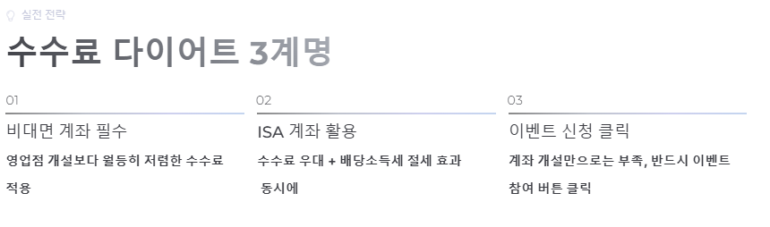 - 이벤트 신청 버튼을 꼭 누르세요: 계좌만 만든다고 혜택이 적용되지 않습니다. '이벤트 참여하기' 버튼을 눌러야 수수료 할인이 시작됩니다!