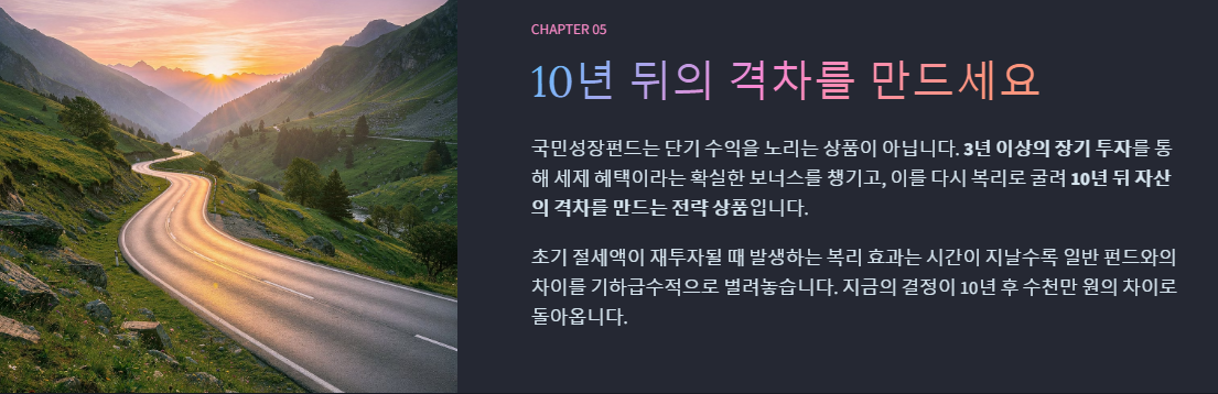 - 복리 가속기: 초기 절세액이 재투자되어 일반 펀드 대비 압도적인 장기 성과 창출