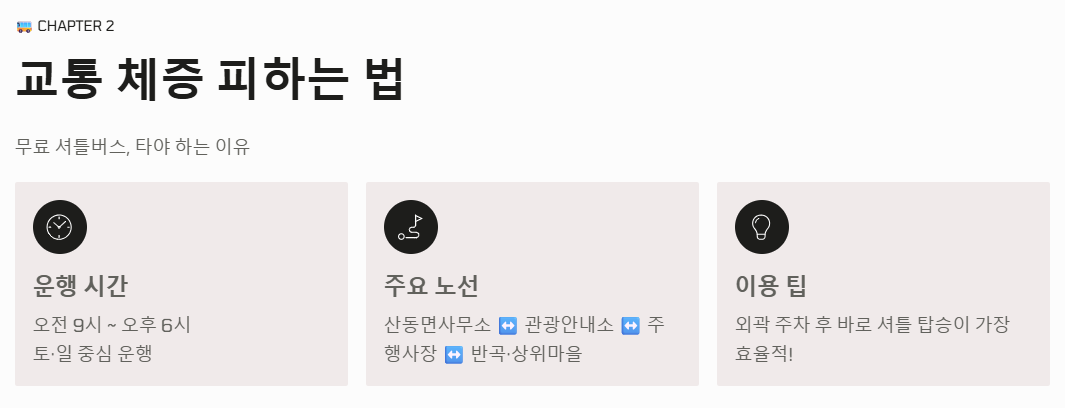 🚌 교통 꿀팁: 무료 셔틀버스 (주말 09:00~18:00)