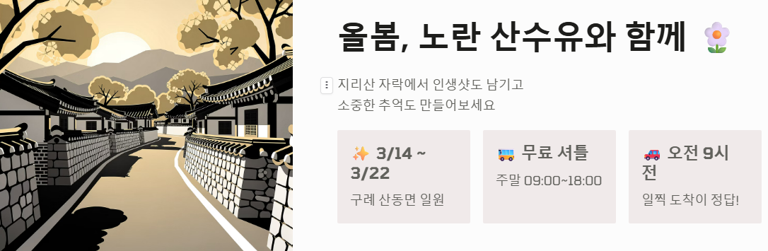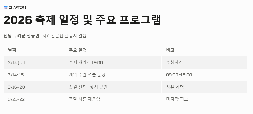 ✨ 핵심 일정: 3월 14일 ~ 22일 구례 산동면 일원
