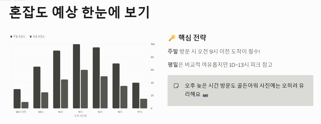 - 최적 방문 시간: 주말 방문 시 오전 9시 이전 도착 추천