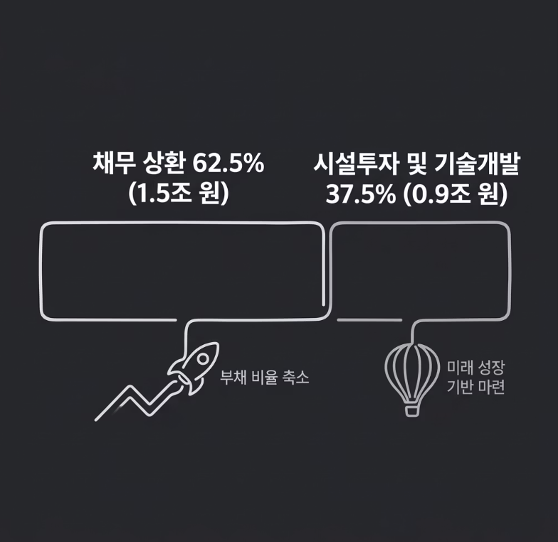 | 채무 상환액 | 약 1조 5,000억 원 | 전체 자금의 60% 이상 |